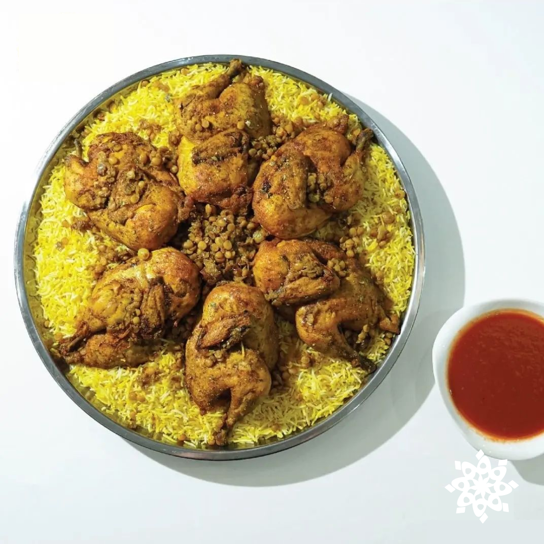 - تشكيلة من المشويات، قوزي بالمكسرات، روبيان مقلي، مكرونة بالبشاميل، مجبوس دجاج، دجاج روبيان، دجاج استيك مع مشروم، دجاج بالزبدة، امريق يامية، تشكيلة من المخبوذات الايرانية واللبنانية